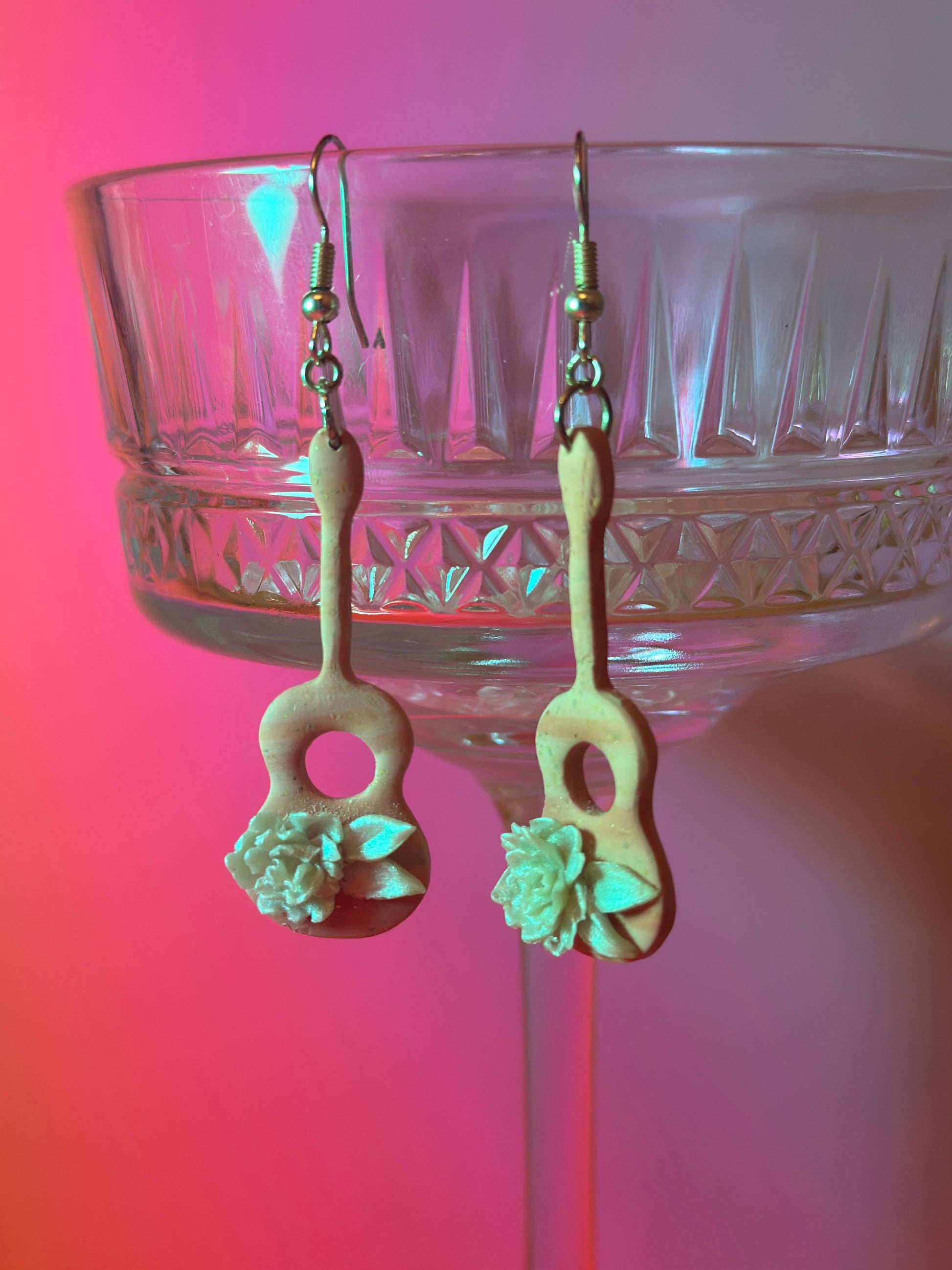 Bring a touch of nostalgia to your ensemble with these unique Floral Guitar earrings. These delicate earrings feature guitars adorned with beautiful flowers, perfect for those seeking to show off their love for music and nature.