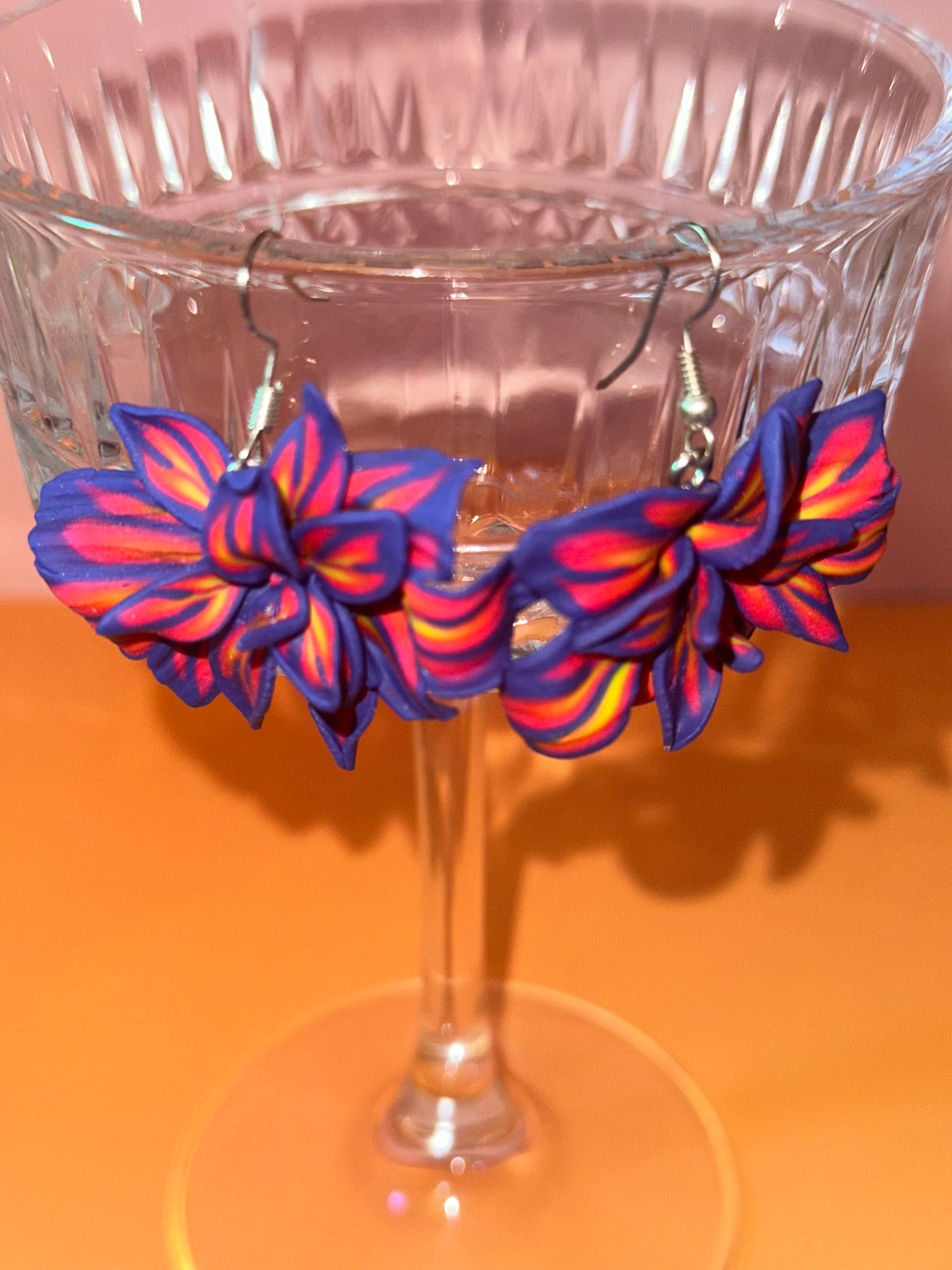 Flower earrings. Carefully crafter petal by petal. Expertly crafted petal by petal, these flower earrings are a stunning addition to any outfit. With meticulous attention to detail, the delicate flowers bring a touch of elegance and femininity. Made with precision and care, these earrings will surely impress.